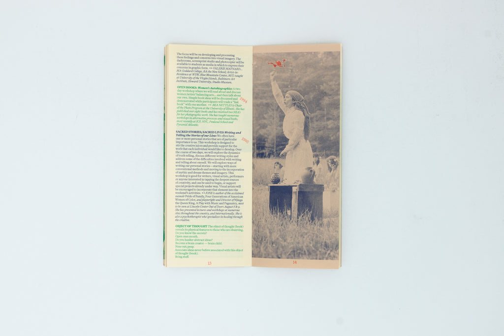 In addition to teaching studio skills such as papermaking, printmaking, and book arts, Women’s Studio Workshop (WSW) has offered workshops that are more experimental, personal, conceptual, or exploratory in nature, rooted in self-observation, inquiry, listening, embodiment, performance, study, and dreams. Here are a few in their original form as they were published in WSW newsletters and Summer Art Institute catalogs from 1983–1999.