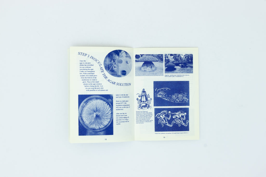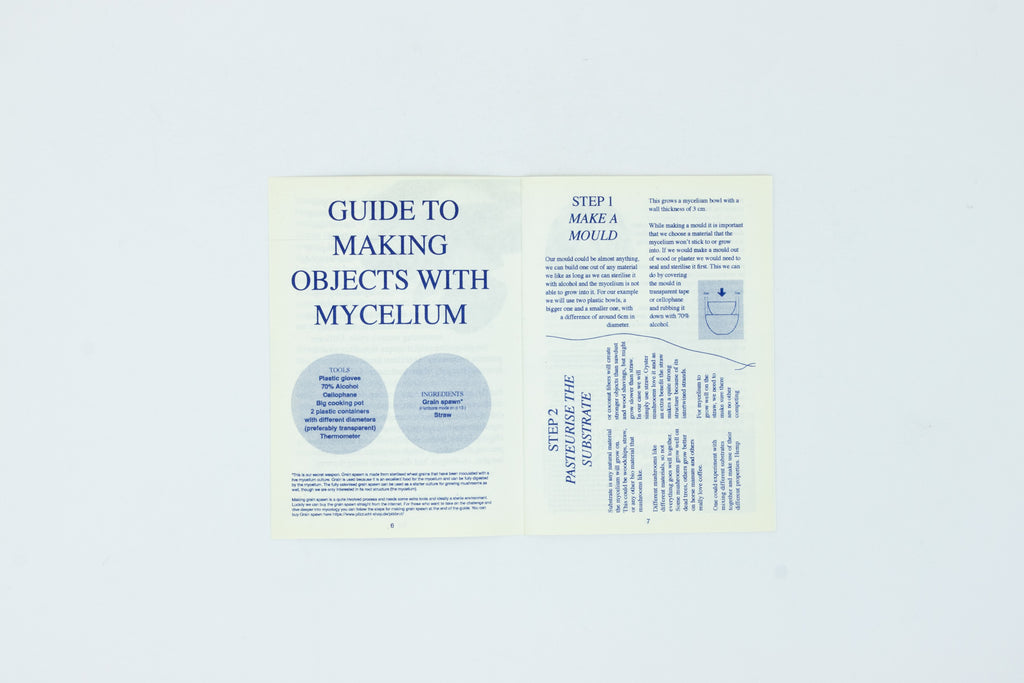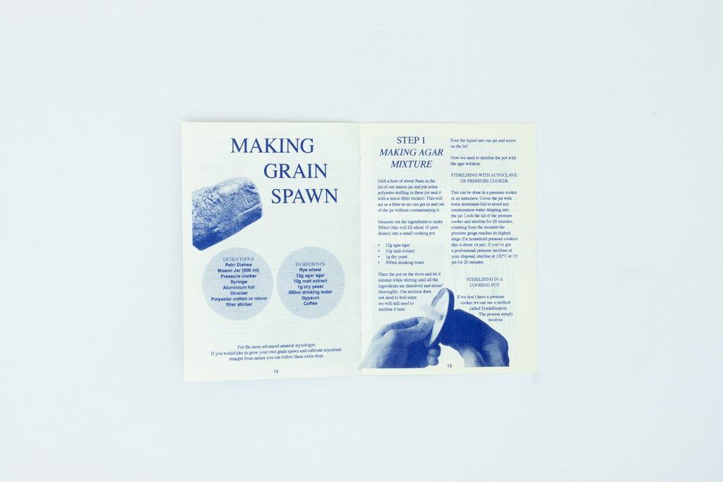 From foraging a mushroom to growing it into any object, How To Make Objects With Mycelium guides you step by step trough the process of creating mycelium based objects at home, without the need for a lab. The publication is very practical in nature and has some historical snippets and mushroom curiosities dotted throughout.