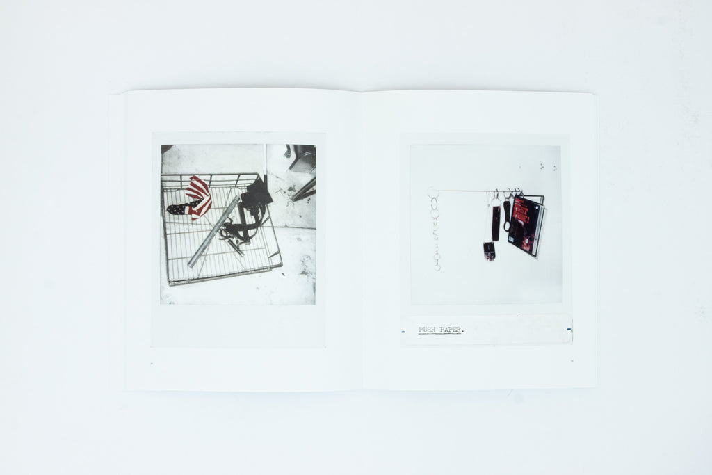 This book was conceived of, edited, and designed by Cady Noland. It reproduces nearly one hundred Polaroids taken by the artist over the course of her career, which illustrate sculptures in process and exhibitions in development.
