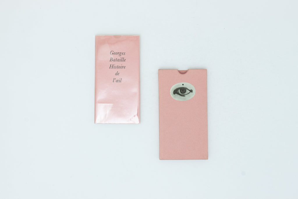 First edition. 12mo. 103pp. Softcover in pale pink paper wraps with printed titles in pink slipcase with pasted-on illustration of an eye. French text. Paris: Jean-Jacques Pauvert, 1967.