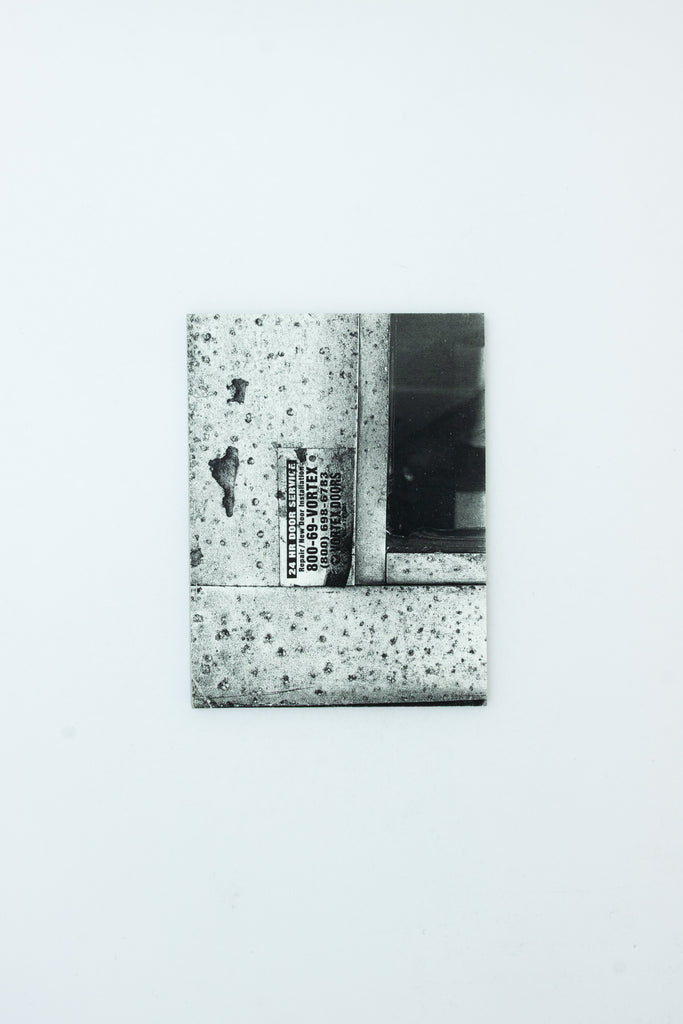 This publication was developed over a year and catalogues the photographs Fiona Connor takes as tools for making sculptures while also considering how she prints and uses these images in her studio. Over five thousand images have been edited and collated into stapled book blocks arranged chronologically. The photographs record architectural details, materials, and specific objects to enable a sculptural language that utilizes processes of mimicry and reproduction. When seen together, they operate like a stream of consciousness recorded through the push of a fingertip on a phone screen.