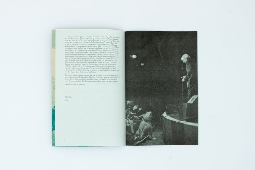 This interview discusses performance throughout Mayo’s work, exploring links between happenings and early Red Krayola live shows, formative encounters with performance art as well as the band’s participation in the 2012 Whitney Biennial.