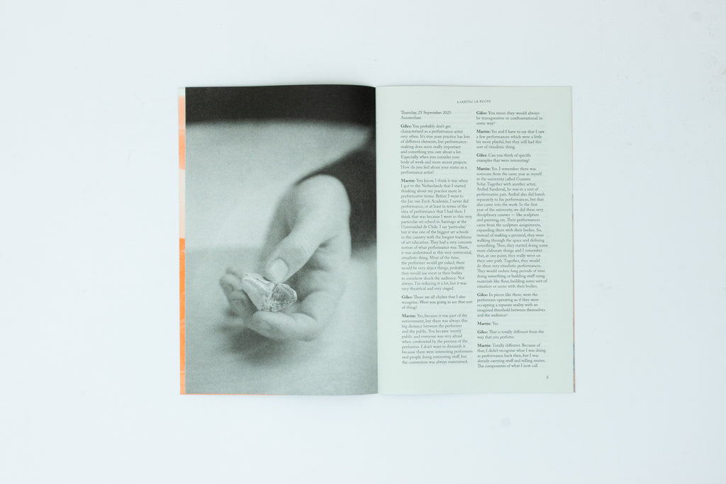 Born in Santiago, Chile, and living now in Amsterdam, his works commonly find starting points in existing collections of objects or memories and archives as modes of storytelling. These often meet their audiences as installations or publications, but this issue of TALKER explores the role performance plays in activating the many facets of his practice. In particular, we examine formative experiences in Chile and as a resident at the Jan van Eyck Academie in Maastricht, his collaboration informed by psychotherapeutic practices, Sandplay with Mirthe Berentsen, and the ongoing Musée Légitime, a museum inside a hat.