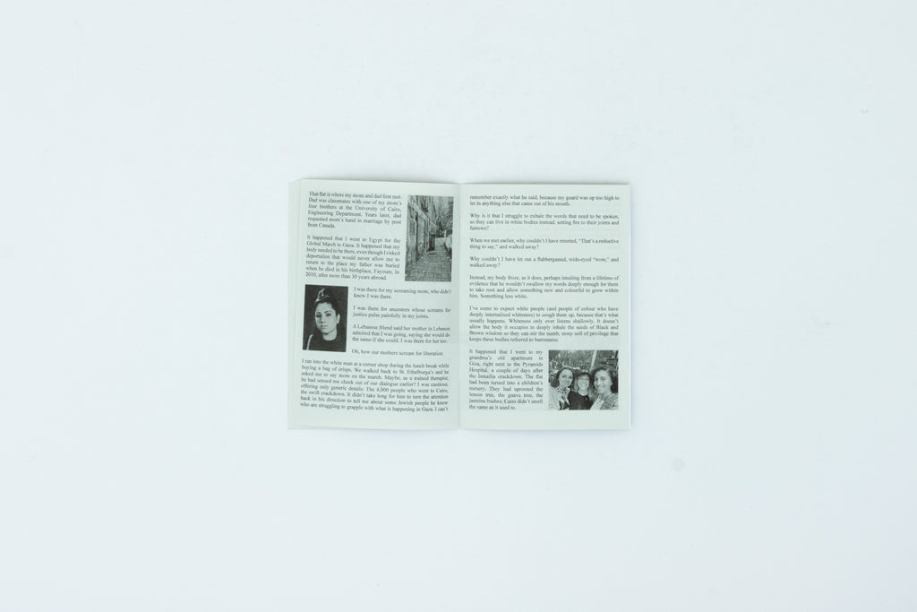 Profits from this zine will go to a Gazan business woman who's shop was torn down by the IDF, they are currently in Cairo trying to rebuild their life and find all the broken pieces. The money will be use to open a new shop, take care of family both in Egypt and Gaza, Palestine.