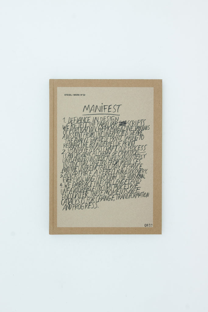 Founded by Theseus Chan in the year 2000, WERK magazine burst forth as a radical vision in the world of publication design. Each issue is a completely different object to the last, and together they form an artistic insurrection against the conventional fabric of printed matter. Each issue is also collaborative, and since STEIDL-WERK No.23: MASAHO ANOTANI “DEFORMED” of 2016, five of those collaborations have been with Steidl, including the latest: STEIDL–WERK No.32: MANIFEST. Featuring new drawings and texts by Chan interpreting and recasting the sights and sounds of Steidl at Düstere Strasse 4 in Göttingen, MANIFEST embraces spontaneity, imperfection, humor, play and the unpredictable. “This is our creed,” declares Chan, “STEIDL-WERK is a manifesto rendered in ink and paper, a continuous revolution that reimagines what a magazine can be—an art piece, a rebellion, a discovery in every edition. We are the art of print, ever evolving, perpetually redefining the essence of how stories are told.”